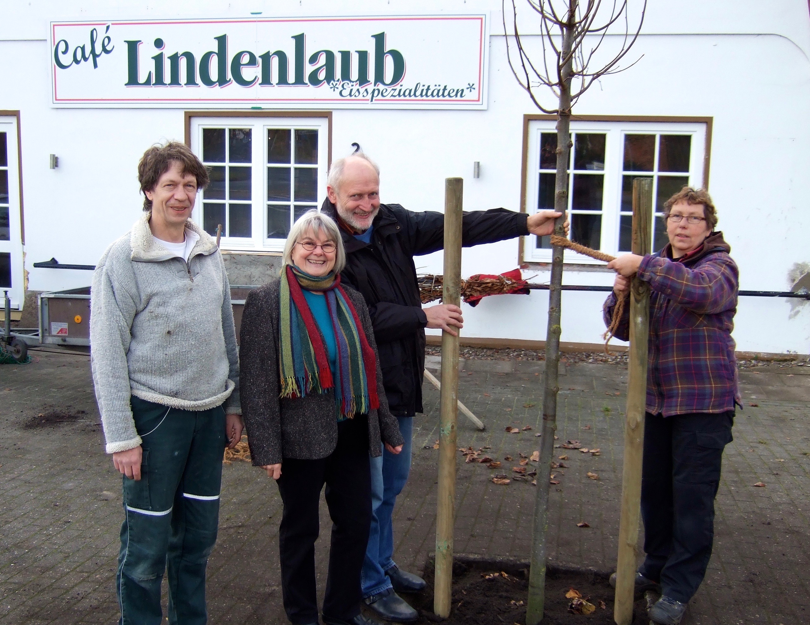 Gründeten die GLO: Brigitte und Wilfried Mittendorf (mitte) bei einer Baumpflanzaktion vor dem Café Lindenlaub (natürlich eine Linde).